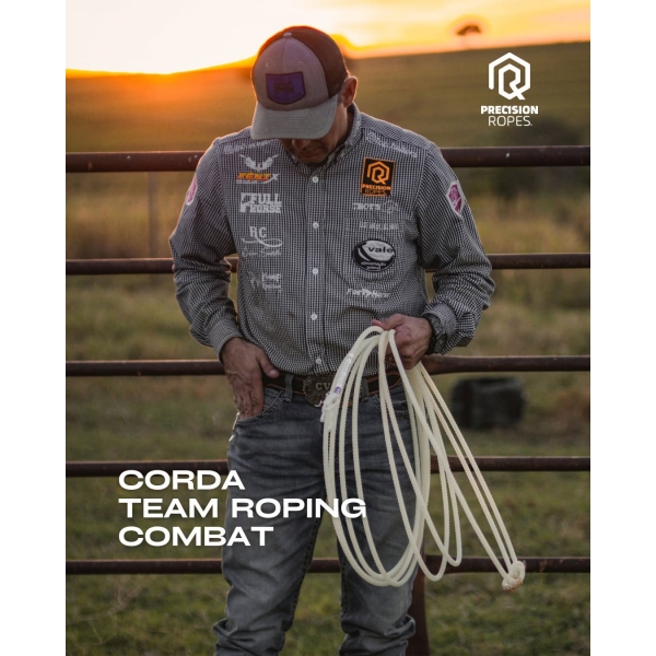 Corda de Laço de 4 tentos para competição de Team Roping (laço em dupla), fabricada em uma mistura de nylon e poliéster com propriedades que tornam a corda extremamente rápida e suave, proporcionando equilíbrio corporal e todas as outras condições necessárias para desempenhar uma boa laçada. A Combat é consistente e permanece a mesma, mesmo em condições adversas de temperatura, pois são fabricadas em território nacional e adaptadas ao clima tropical brasileiro.